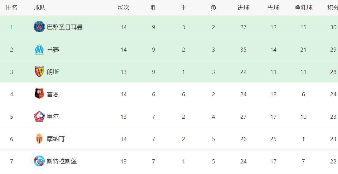 榜上积分,30分暂居榜首巴黎圣日耳曼积,的马赛和积28分的朗斯紧随其后的是积29分,差异仅有两分前三名之间的。分位列第四雷恩积24,哥同积23分里尔和摩纳。法甲联赛这赛季的,有的激烈态势透露出前所未,耳曼一家独大的事态再也不是巴黎圣日。现出搅局的能力中游球队也展,够打败巴黎摩纳哥能,克造巴黎朗斯也能,球队注入了决心这无疑为其他。