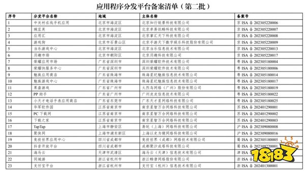 日音尘4月9,批23家行使次序分发平台名称及注册编号国度互联网讯息办公室公斥地布颁布第二,中央等、豌豆荚、魅族行使中央亚星会员开户PP帮手、同城游等此中席卷抖音绽放平台、TapTap、竞技宇宙行使。